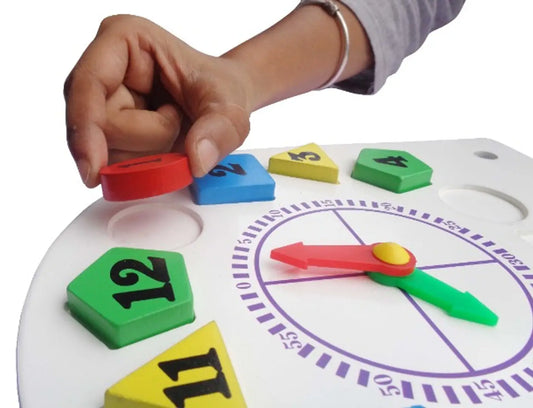 Wooden Learning Clock , Educational Digital Analog Numbers, Shape Color Learning Montessori Toy for Kids- Multi Color