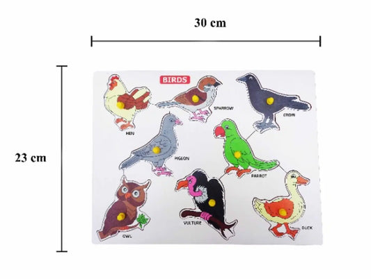 Wooden Birds with Picture Educational Board for Kids 8 Birds Knob